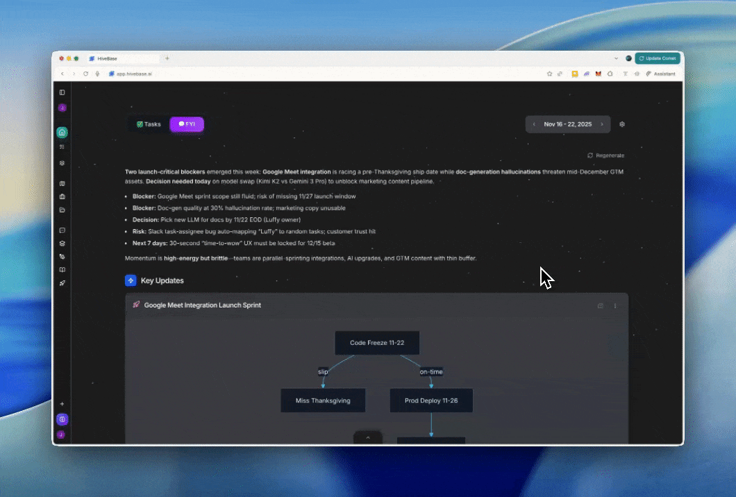 FYI just got visual and conversational. Instead of parsing walls of text, you can now see your updates as flowcharts—and ask questions to go from read to action, all without leaving Home.